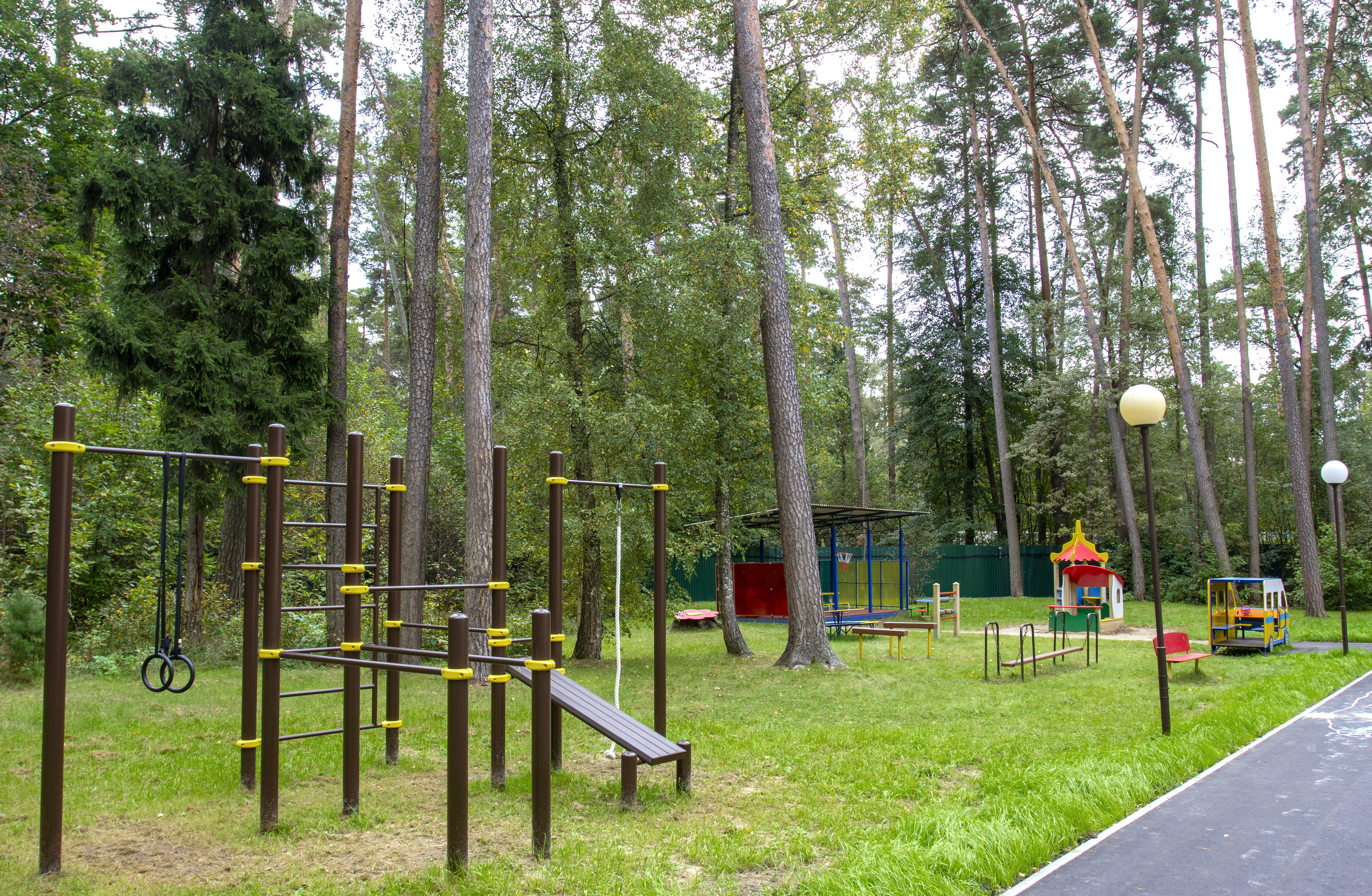 Закрытая, ухоженная и охраняемая территория комплекса, расположена в экологически чистом городском округе Одинцово, п. Сосны. Прогулки, занятия, летние программы проходят на свежем воздухе в сосновом лесу.